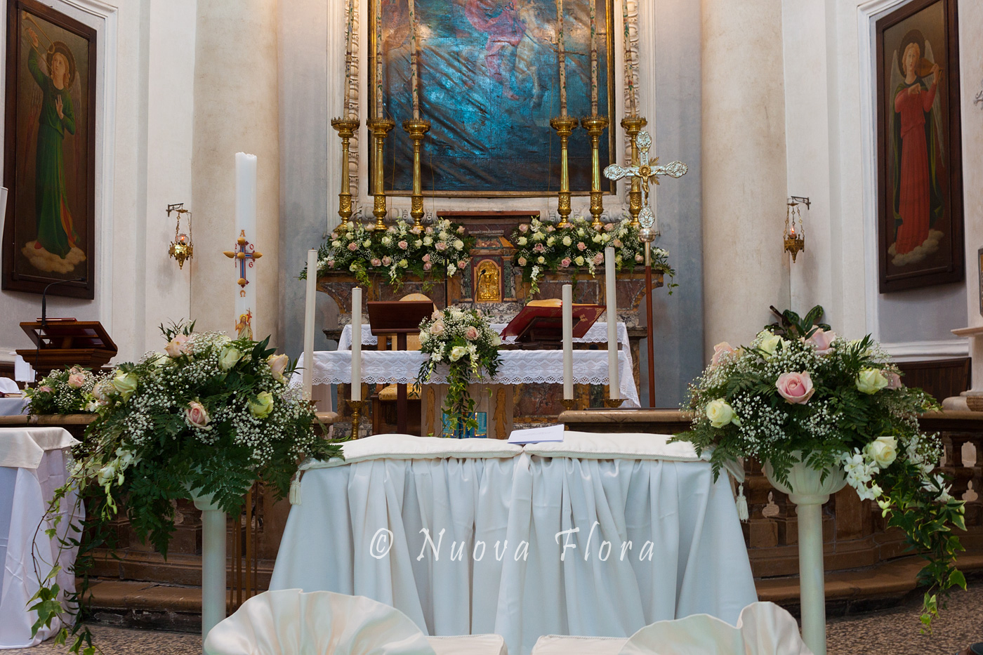 Addobbo nuziale con Rose rosa, Rose bianche e Dendrobium