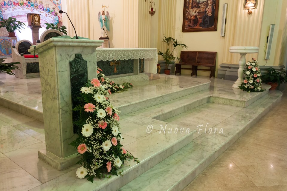 Gerbere rosa e bianco per l’addobbo nuziale